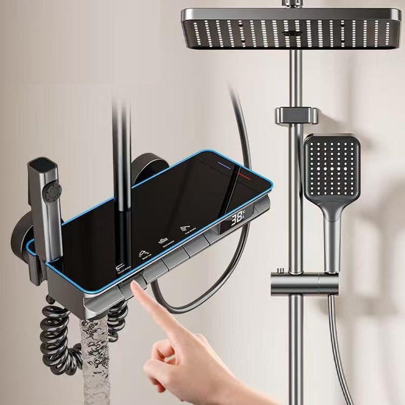 Redefinește luxul în baia ta cu ajutorul coloanei de duș de pe dinex.ro! Dotată cu afișaj digital pentru temperatură și comenzi intuitive tip pian, această coloană îmbină designul futurist cu funcționalitatea de top pentru un confort absolut.