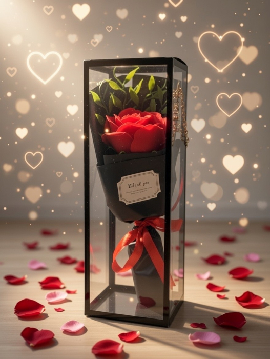 Frumusețe Permanentă: Spre deosebire de florile naturale, acest trandafir nu are nevoie de apă, lumină sau îngrijire specială și nu se va ofili niciodată.